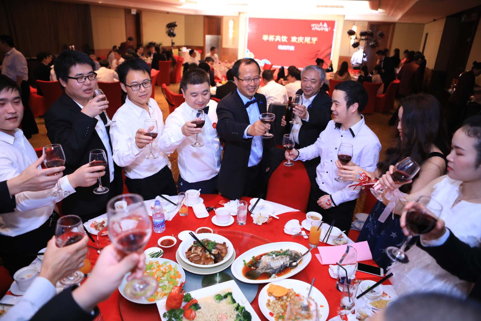 年会启幕,烟花盛宴红红火火,红酒塔节节高升,伊视贝领导们与全体员工一起举杯畅饮,欢庆尾牙。