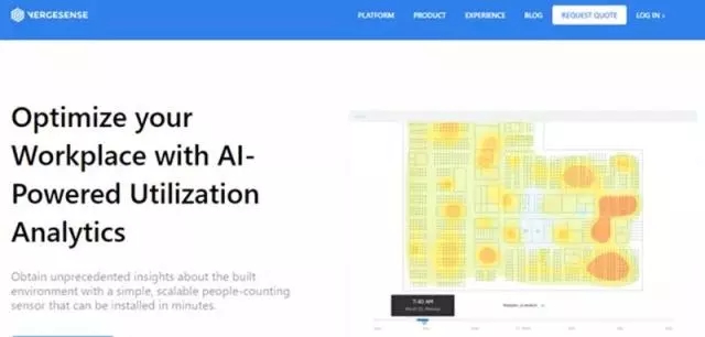 技术亮点:据VergeSense表示,他们的平台平台已经被15家财富500强公司使用,监控的办公空间超过100万平方英尺。